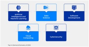 Artificial Intelligence and Machine Learning continues to emerge as the most sought-after upskilling domain among professionals in 2025, accounting for 17% increase in year-on-year demand for the domain. This was followed by domains like  Data Science, Software Development, Cloud Computing, and Cyber Security.