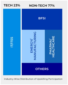 77% of learners who upskilled in 2025  were employed in non-technology sectors, including BFSI, manufacturing, energy, pharma, healthcare, and other traditional industries, while 23% were working in IT/ITES organisations.