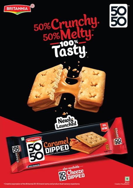 Britannia 5050 Cheeze Dipped and Caramel Dipped Crunchy Layered Sandwiches are currently available across select cities at leading retail outlets and Q-commerce platforms.