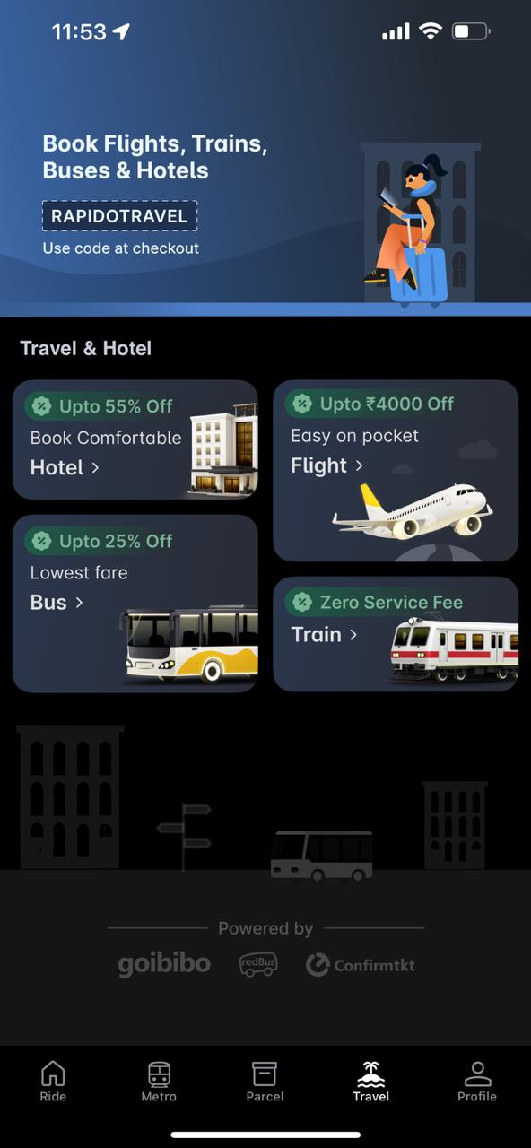 • One app, all journeys: Whether it’s your daily commute, an airport ride, a train trip, or a weekend getaway, Rapido makes every journey simple, seamless, and cost-effective.
