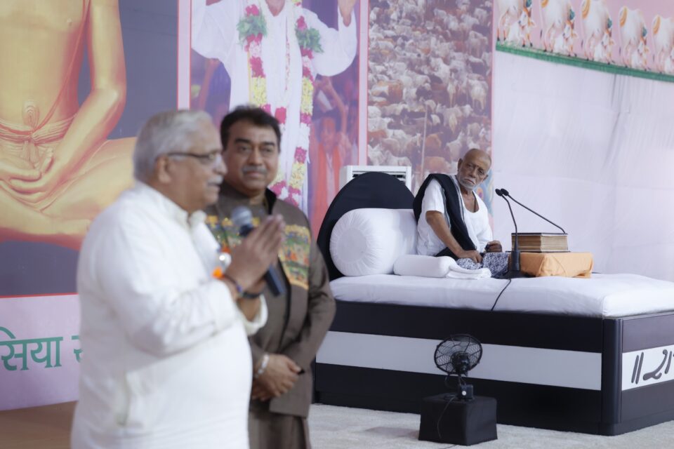 Welcoming the RSS leader to the gathering, Morari Bapu commended the organisation’s role in taking the message of Sanatan Dharma, the Vedic traditions, and the vast idea of Hindutva to the wider world.