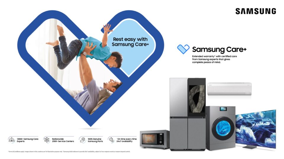 GURUGRAM, INDIA | 12th NOVEMBER 2025 — Samsung, India’s leading consumer electronics brand, todayannounced the expansion of its Samsung Care+ service to include extended warranty plans for home appliances including Refrigerators, Washing Machines, Air Conditioners, Microwave ovens, and Smart TVs. Customers can now choose from plans that range from 1-4 years, offering comprehensive protection and convenience, with prices starting as low as INR 2 per day.
